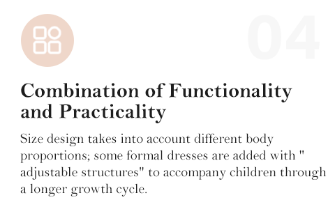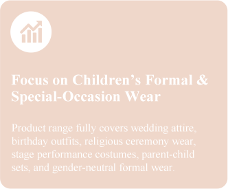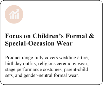Our product range covers multiple collections, including wedding flower girl dresses, birthday party outfits, religious ceremony formal wear, stage performance costumes, parent-child sets, and gender-neutral minimalist formal wear. We place particular emphasis on the delicacy of design, the safety of fabrics, and the comfort of wear. Whether it is a gorgeous tiered "cake" dress or a detailed mini blazer, we strive to achieve the goal of "dressing children in the most unique formal wear on their most special days".